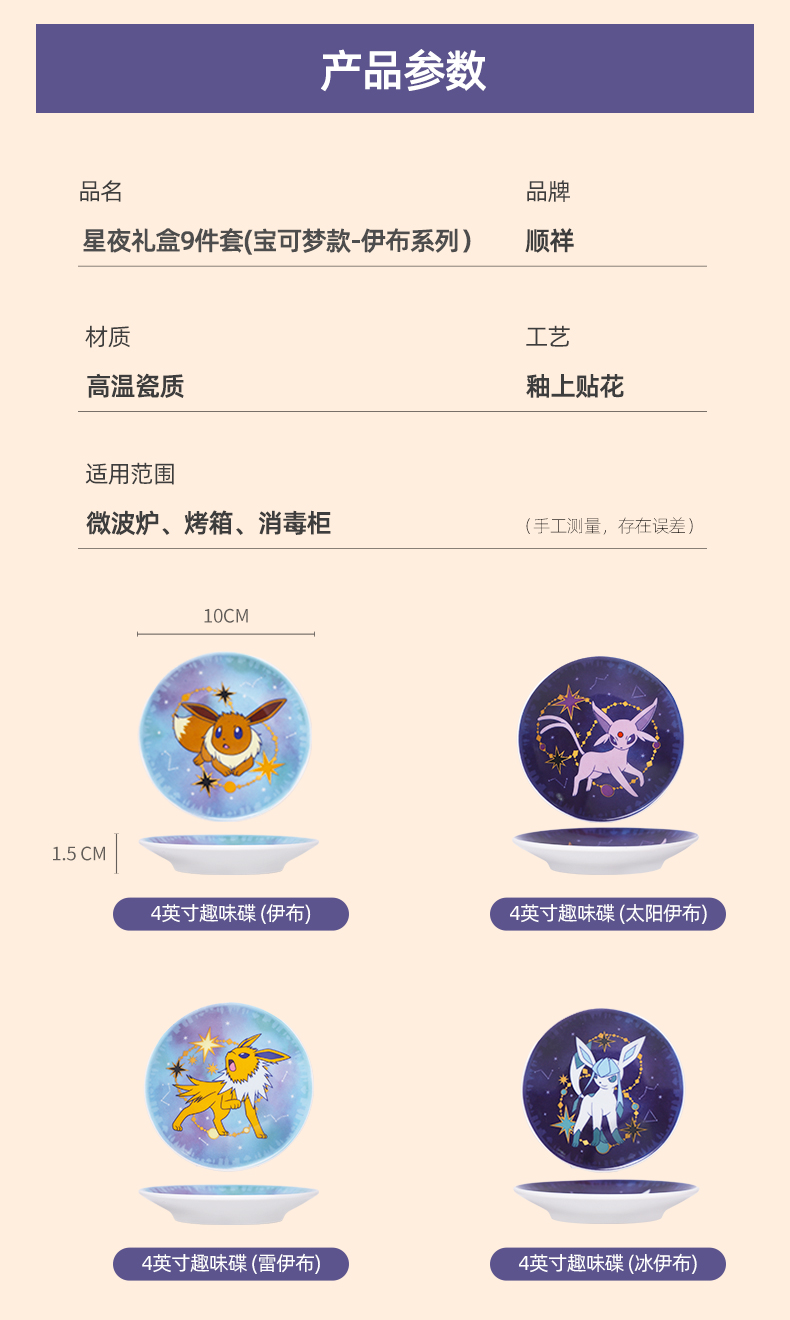名称:顺祥宝可梦款伊布家族星空味碟礼盒