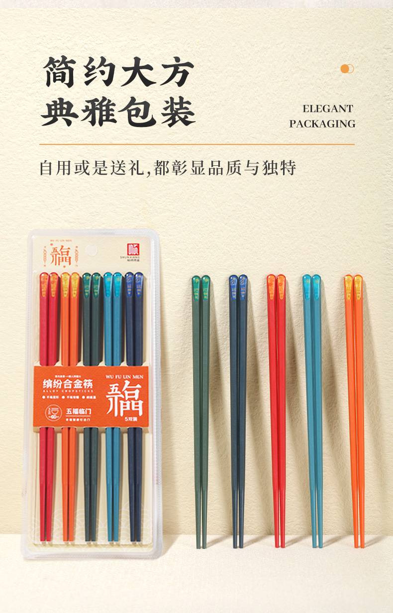 名称:顺祥缤纷合金筷5双 (五福临门)