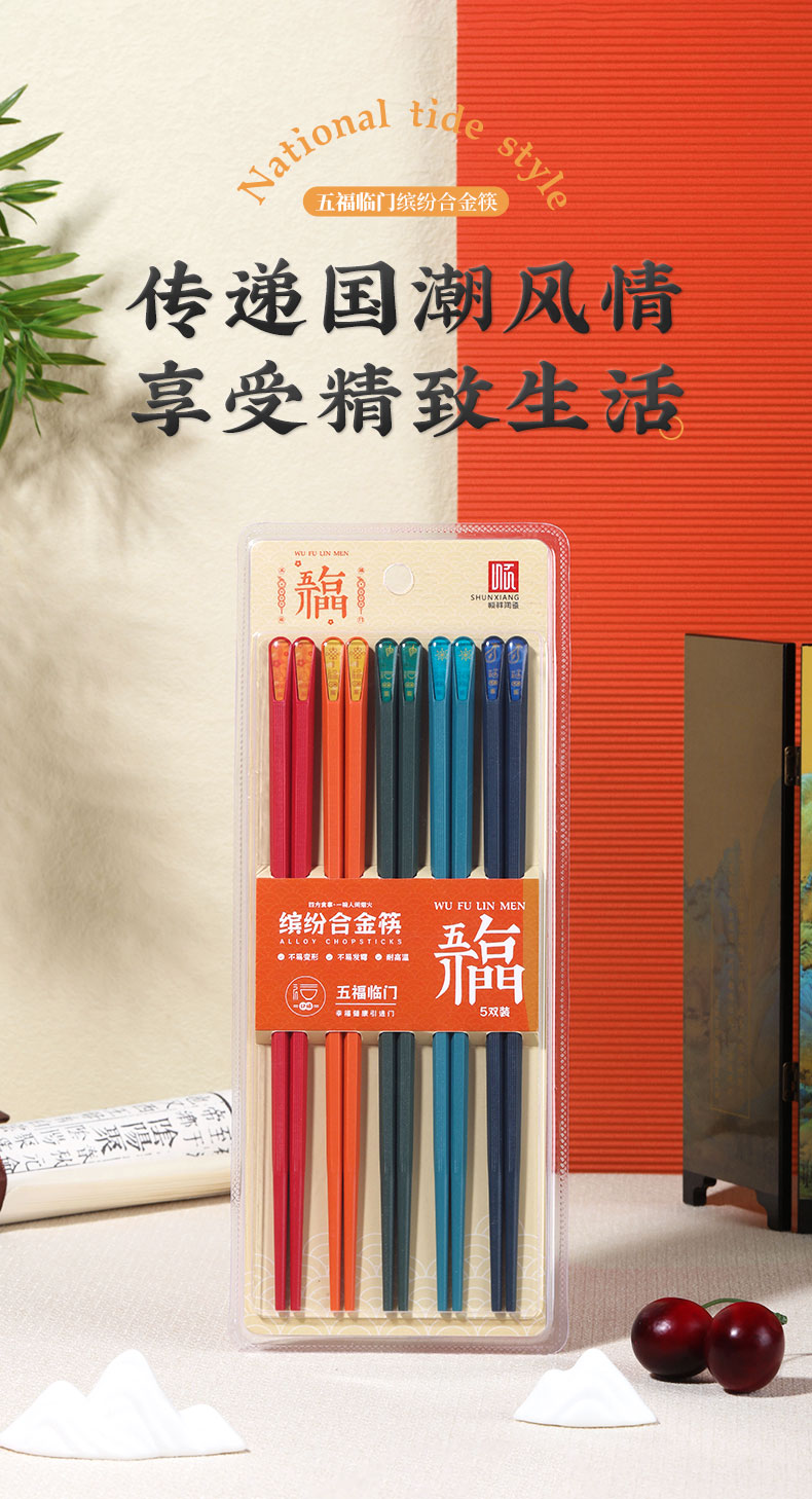 顺祥缤纷合金筷5双 (五福临门)