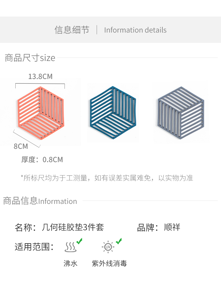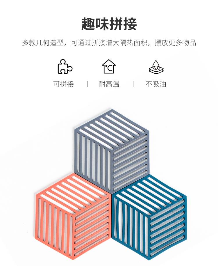 顺祥几何硅胶隔热垫3件套
