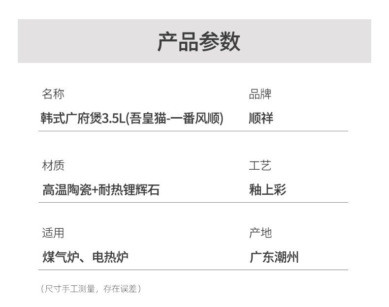 名称:韩式广府煲3.5L(吾皇猫-一番风顺)